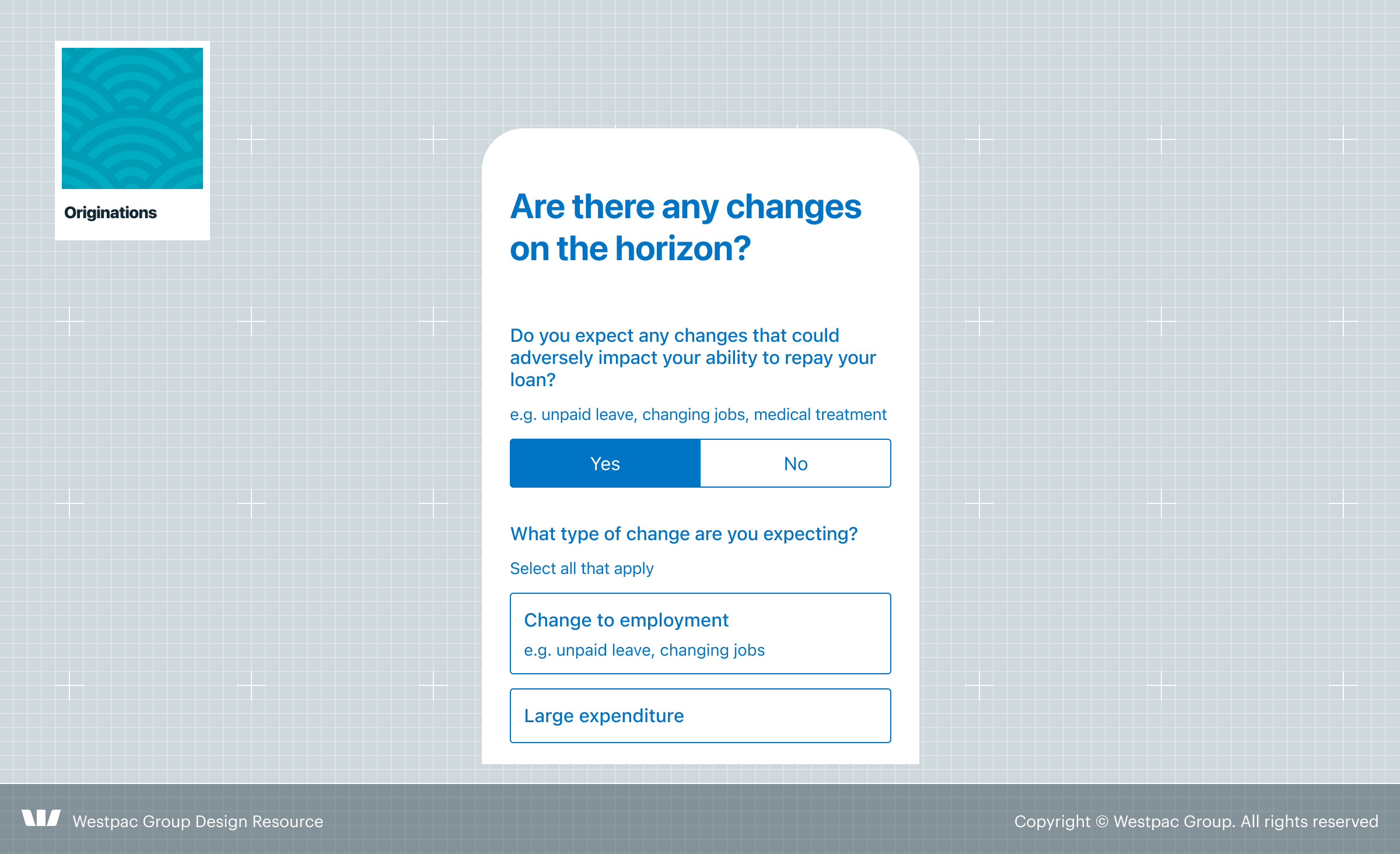 Here are links to detailed specifications of the pattern in Figma. This information is only available to Westpac Group employees: